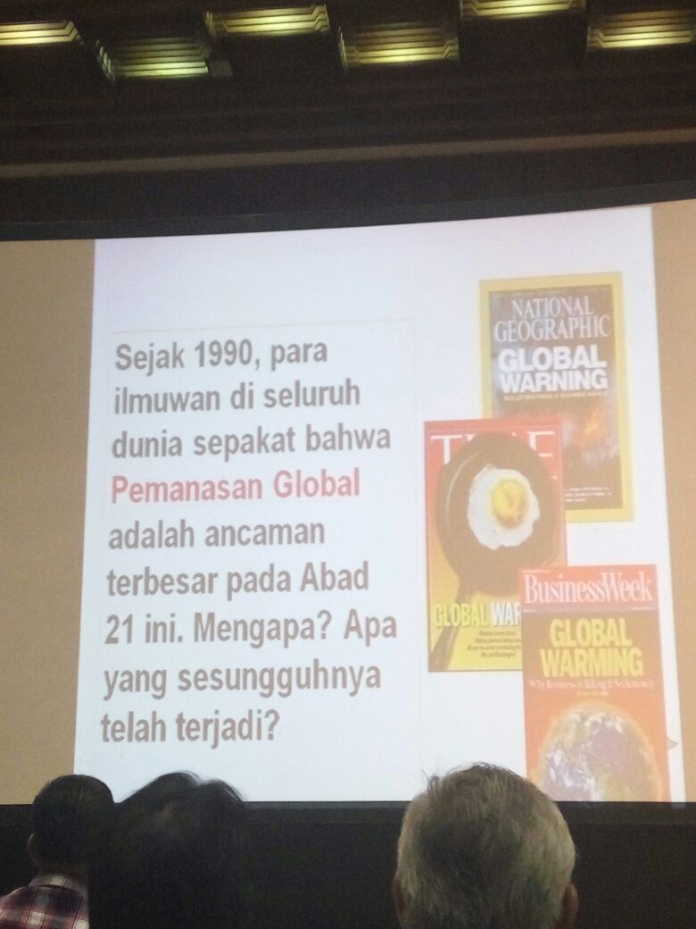 Acara Diskusi yang dilaksanakan di Auditorium Soedjarwo, Gedung Manggala Wanabhakti, Jakarta Selatan ini di moderatori oleh Bpk. Imam B. Prasodjo dengan judul “Hidup Di Iklim Yang Berubah”.