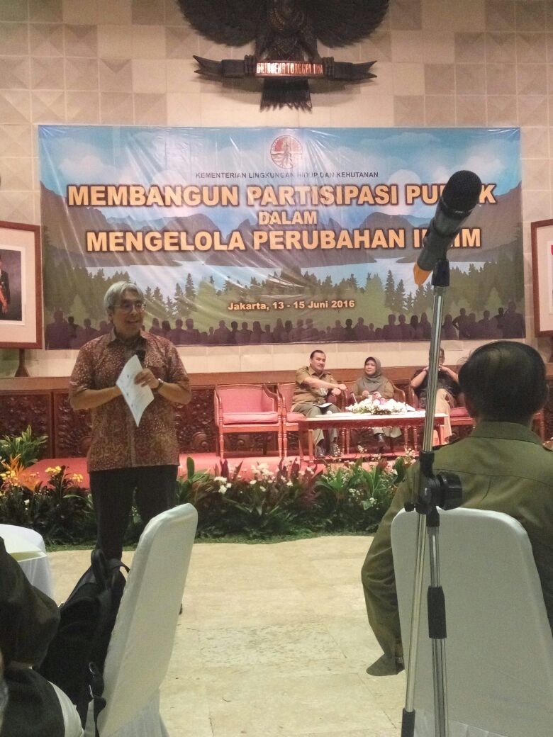 Dalam rangka membangun komitmen antara pemerintah dan masyarakat untuk menghadapi perubahan iklim ini, pada tanggal 13 Juni 2016, Kementrian Lingkungan Hidup dan Kehutanan mengadakan acara Diskusi dengan para Netizen dan Jurnalis. Dalam pidato pembukaan Diskusi yang bertema “Membangun Partisipasi Publik Dalam Mengelola Perubahan Iklim”, Menteri Lingkungan Hidup dan Kehutanan Dr. Ir. Siti Nurbaya Bakar, M.Sc mengatakan “Upaya pengendalian perubahan iklim perlu dikerjakan bersama-sama dengan masyarakat karena ini berkaitan dengan kegiatan sehari-hari, contohnya pilihan kita akan moda transportasi, kegiatan di rumah misalnya hemat listrik, hemat air dan milah sampah”.